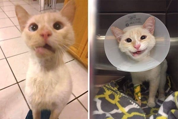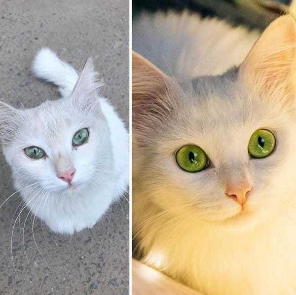 Описание слайда уверяет, что кот на снимках был «самым страшным» из собратьев. Что ж, лично я не вижу никакой разницы в его облике «после». А Вы?