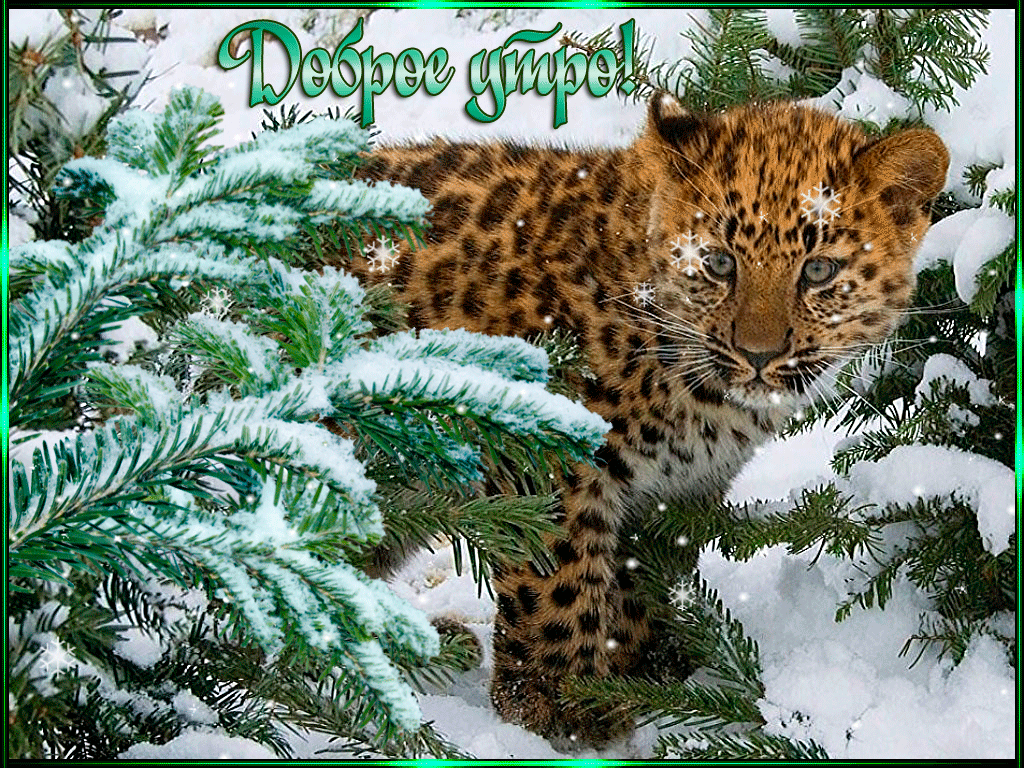 31. Красивая зимняя гифка доброе утро с леопардом!