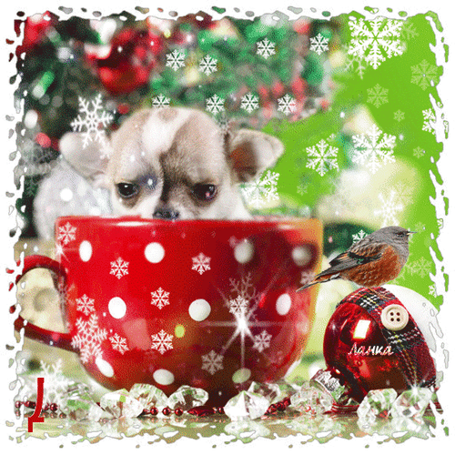 113. Мерцающая Креативная зимняя gif открытка доброе утро с чайком и шоколадом