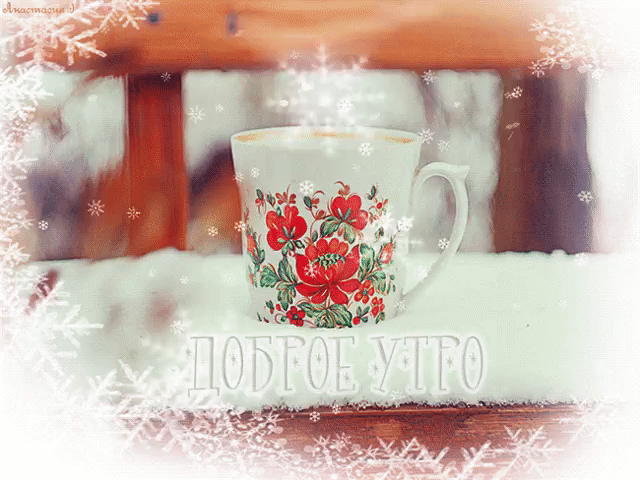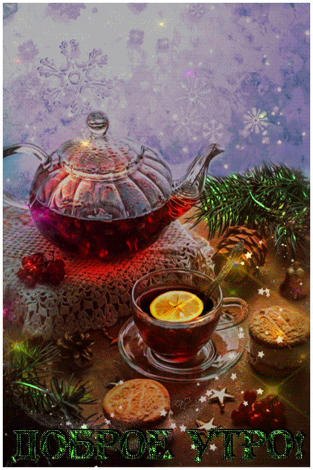 68. Анимация Тепло в морозное утро, Доброе морозное утро с чаем