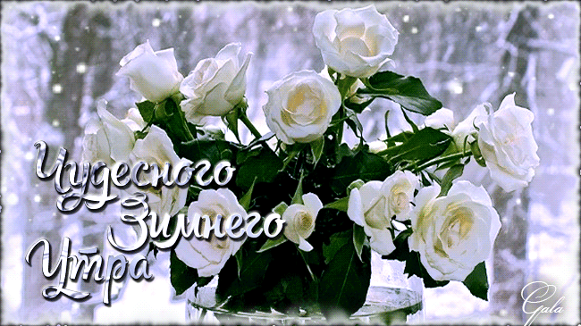 10. Гифка с добрым зимним утром с букетом белых роз!