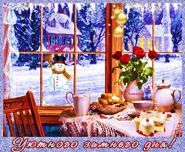 6. Анимированная мерцающая картинка уютного зимнего дня!