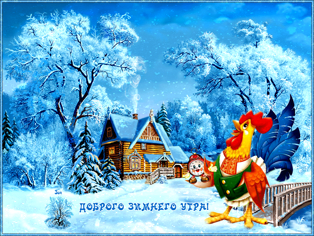39. Красивая зимняя гифка доброе утро ! Пора вставать! С петухом…