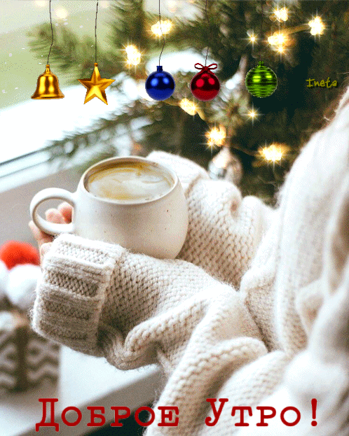 10. Красивая гифка с добрым зимним утром с ароматным горячим напитком!