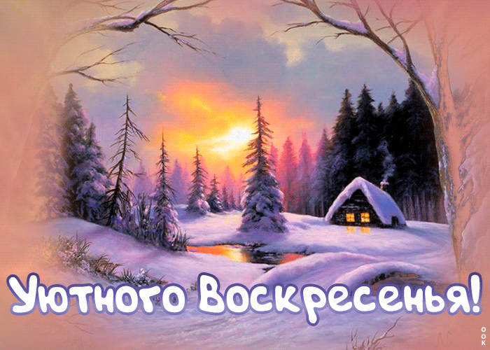 4. Анимированная картинка с пожеланием уютного зимнего воскресенья и красивый пейзаж