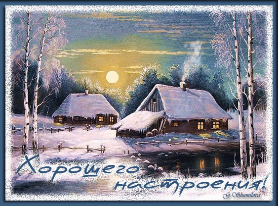 10. Гиф открытка деревня зимой, природа и пожелание хорошего настроения!