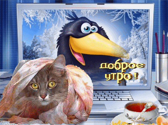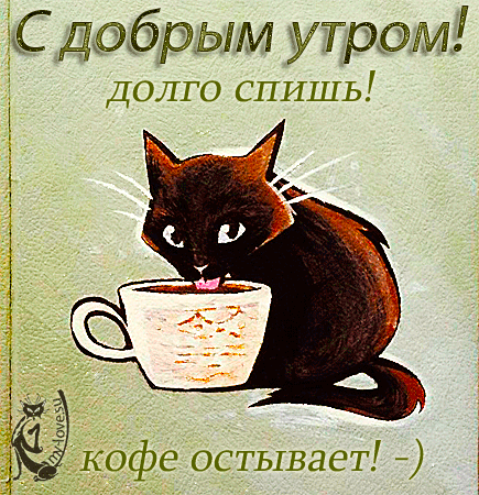 1. Прикольная gif картинка с добрым утром! Долго спишь! Кофе остывает…