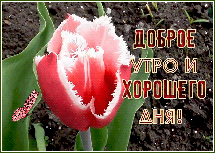 3. Мерцающая гифка картинка доброе утро и хорошего дня с бабочкой и цветком!