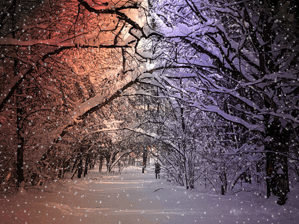 4. Гиф картинка сказочной зимы! Снег идёт в ночном лесу!