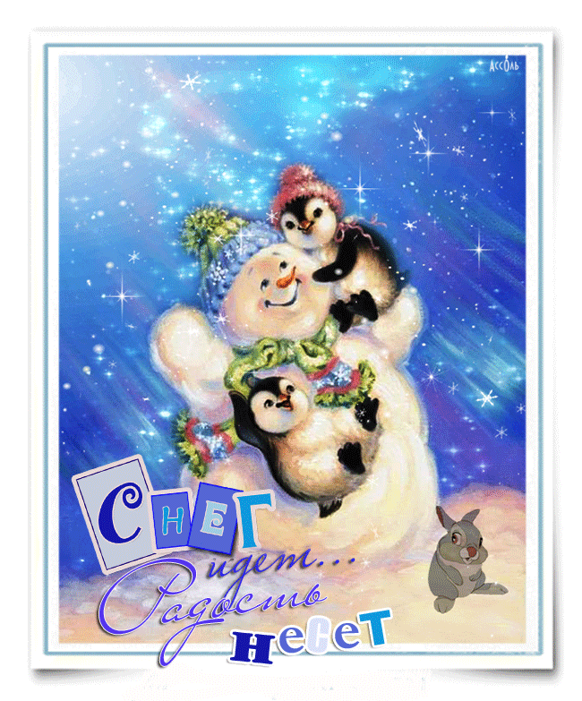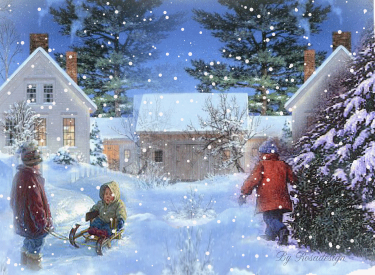 8. Красивая зимняя анимация дети играют во время снегопада!