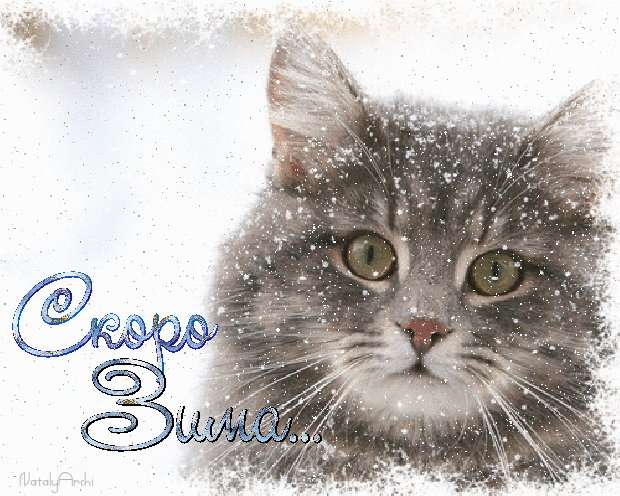 7. Смешная гифка Скоро зима…. И котик весь в снегу!