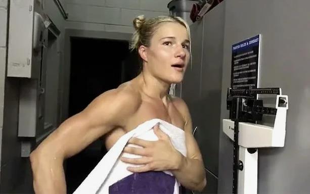 Спортсменка взвешивалась перед очередным боем, по ОФИЦИАЛЬНОЙ версии, а из одежды на ней было лишь банное полотенце, которое соскальзнуло и на несколько секунд явило миру голую Фелис Херриг.