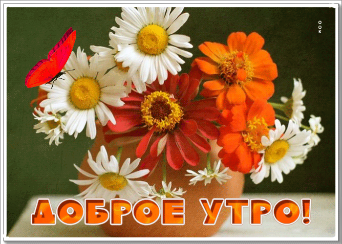 10. Красивая гифка с букетом цветов и пожеланием доброго утра!