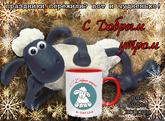 6. Классная и позитивная гифка С добрым утром с овечкой