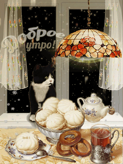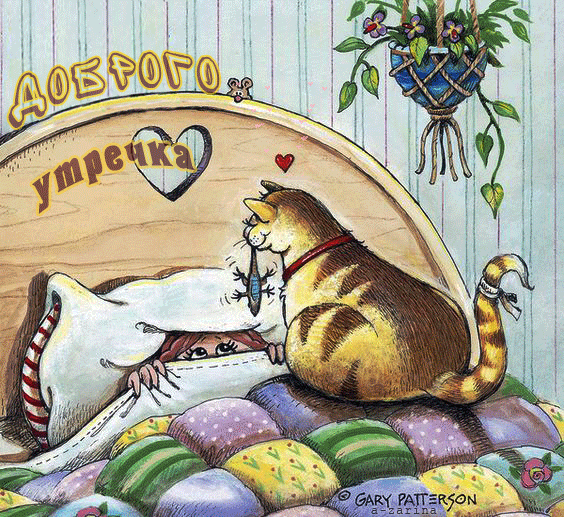 1. Прикольная гифка доброго утречка с котом и мышкой