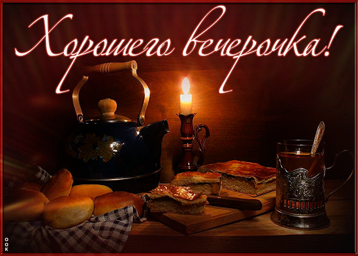1. Мерцающая анимационная открытка добрый вечер в старинном стиле!