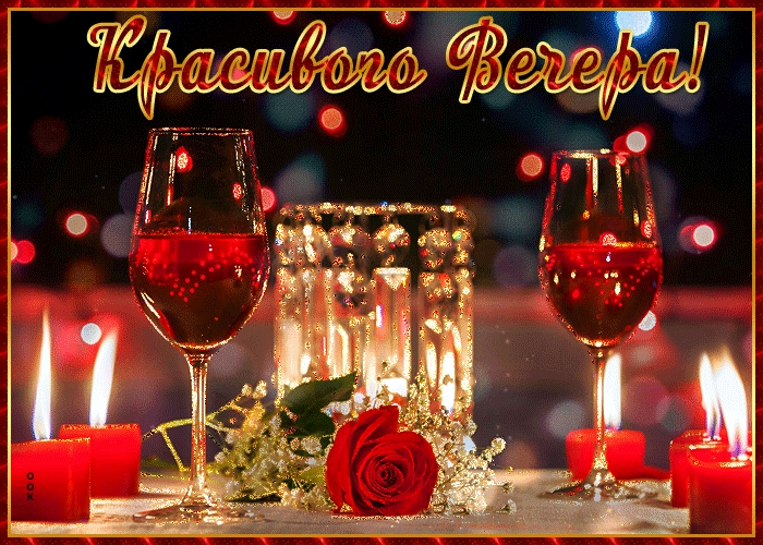 7. Яркая анимация с пожеланием красивого вечера с бокалом вина!