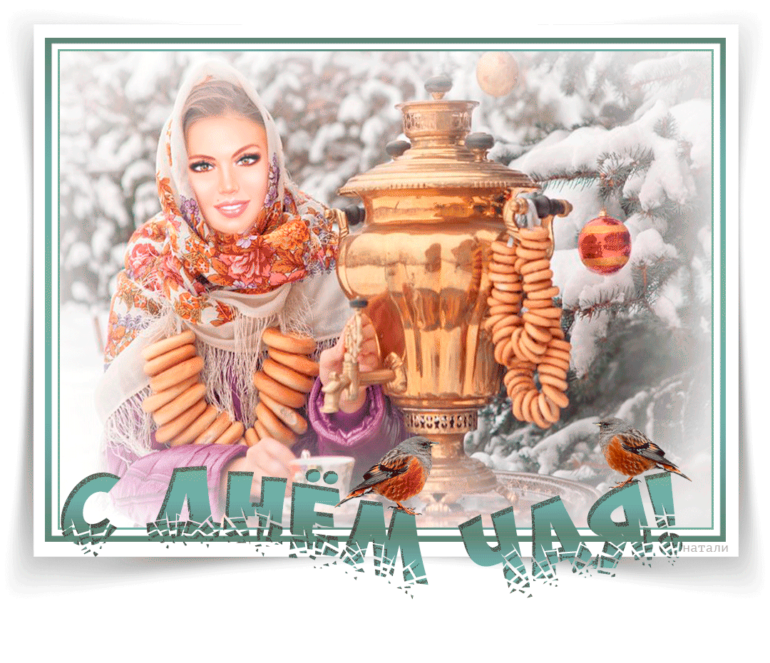 8. Славянская gif открытка с международным днём чая с самоваром и сушками!