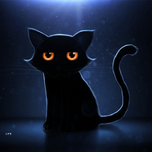 1. Гифка Ностальгия. Вот так и выглядела моя кошка, про которую упоминал в заметке. Густая чёрная шерсть и жёлтые глаза.