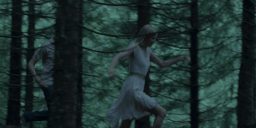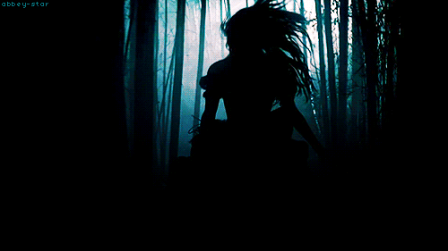 8. Гифка Ночь. Ещё один ужастик. Зачем она оказалась в ночном лесу? Мне неведомо. Девчонка беспокойно озирается вокруг.