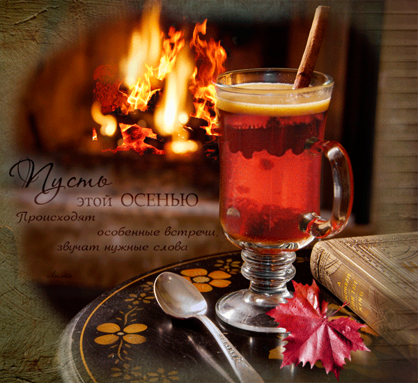 7. Прикольная гифка про осенний вечер с горячим чаем у камина