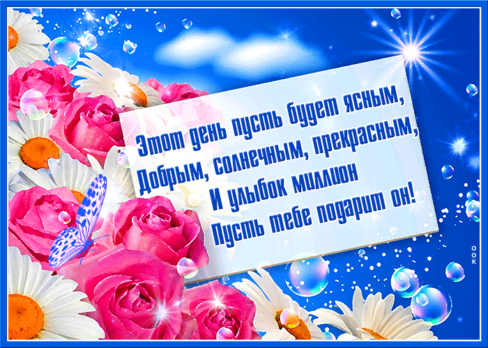 3. Мерцающая анимационная гиф открытка с пожеланием доброго и солнечного дня!