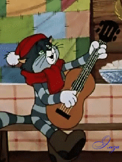 3. Гифка Матроскин. Кот играет на гитаре. Если правильно помню, его озвучивал Олег Табаков.