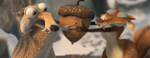 5. Смешная гифка с белкой и орехом из мультфильма Ледниковый период