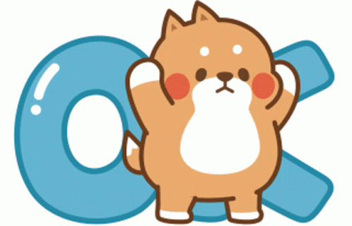 8. Анимированный рисунок блестящей надписи Ок. Забавный котёнок скользит и вращается на переднем плане