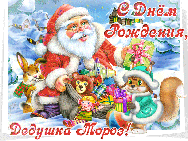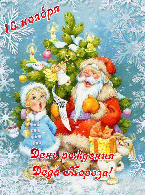 Гифка С Днём рождения Деда Мороза 18 Ноября.