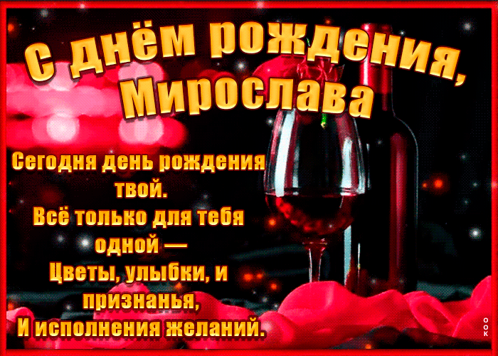 2. Gif картинка с пожеланиями на день рождения Мирославе