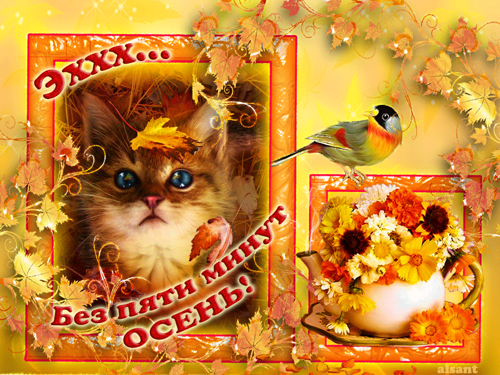 Анимированные gif картинки и открытки Осенний привет, с первым днём Осени 2025