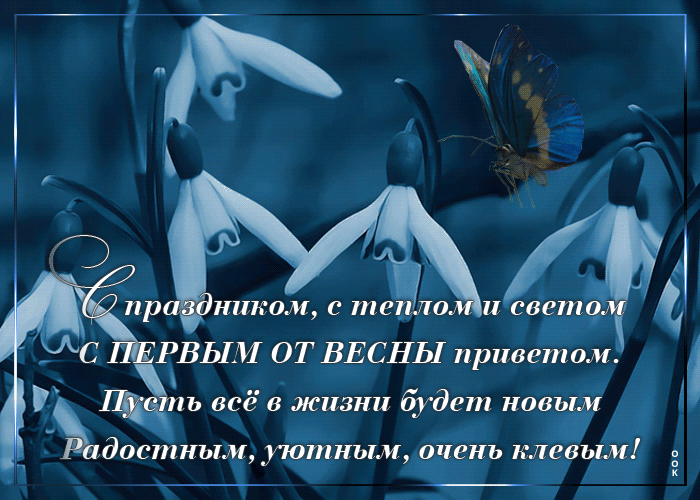 Анимация с бабочкой и поздравлением с первым днём весны.