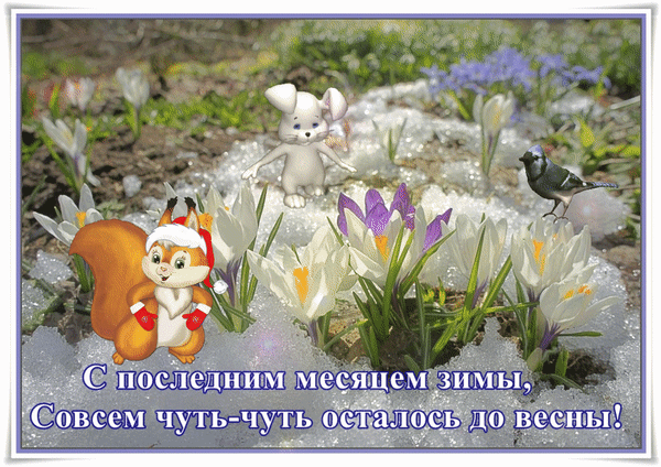 Скачивайте Gif анимацию, картинки и открытки с последним месяцем зимы на нашем сайте совершенно бесплатно. Жмите на сердечко, если вам понравилось. Пишите в комментариях какие подборки гифок вам хотелось бы увидеть на сайте и мы обязательно их добавим !!!