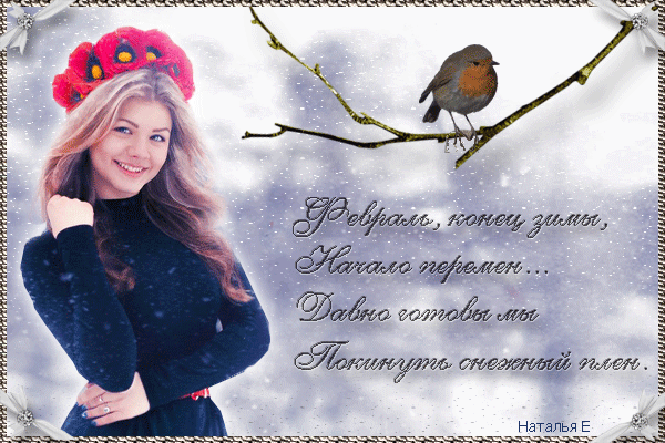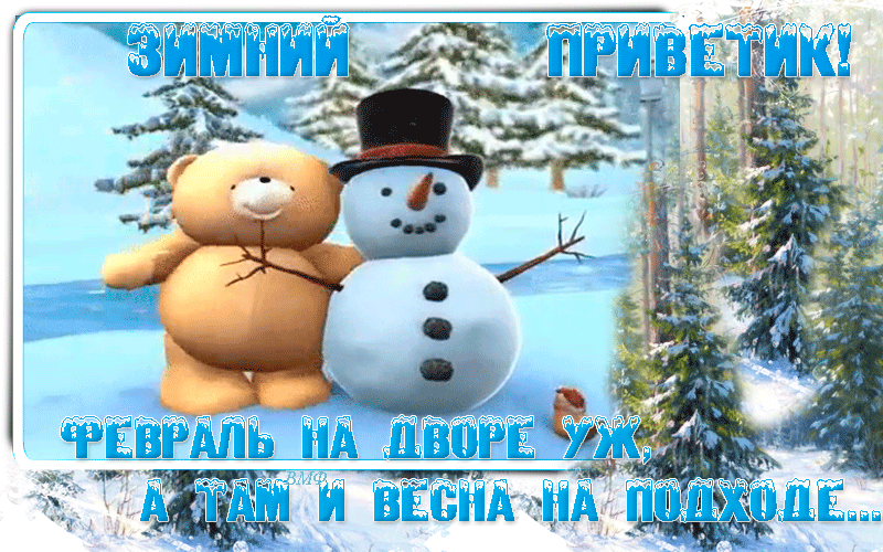 Gif открытка февраль пришёл в конце зимы, холодный он, но рады мы, ведь очень скоро снег сойдёт, подснежник нежный расцветёт!