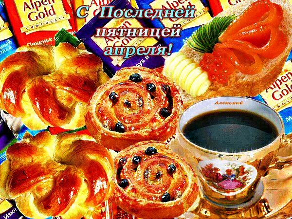 Вкусная анимация поздравляю с последней пятницей Апреля.