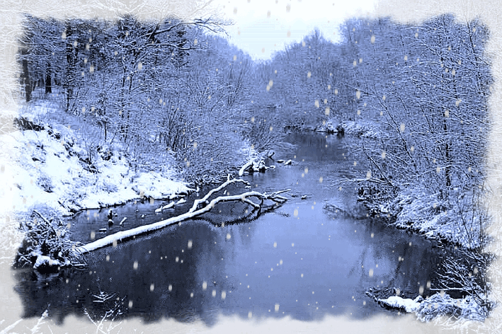 2. Gif картинка падающий вечерний снег на фоне фонарей