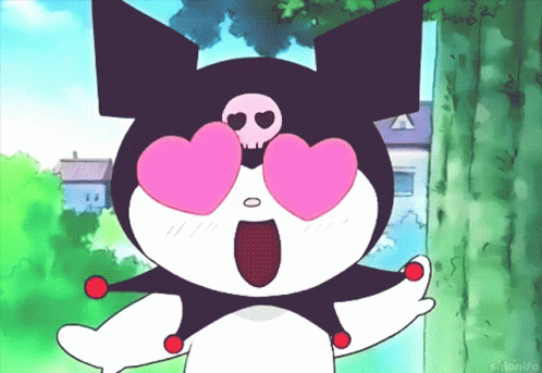 Влюблённая Куроми Санрио гиф с глазами в виде сердечек.