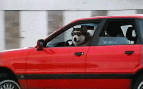 8. Гифка собака учится водить машину