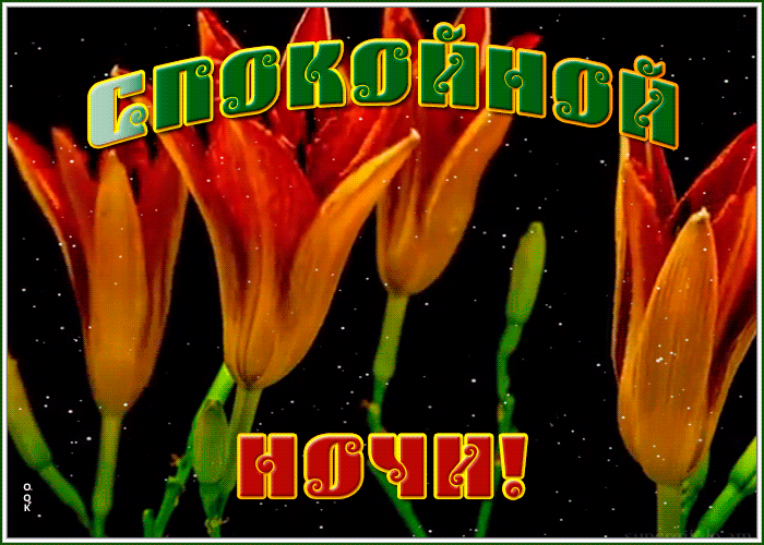 1. Красивая мерцающая gif картинка спокойной ночи с распускающимися цветами!