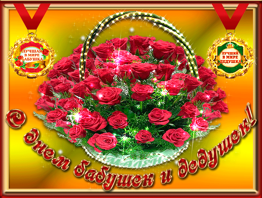 3. Классная анимация с букетом роз с днём дедушки и бабушки!