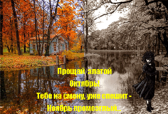 9. Гифка картинка прощай златой Октябрь! Тебе на смену, уж спешит — Ноябрь промозглый..