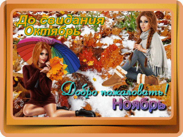 10. Анимированная гиф картинка до свидания Октябрь! Добро пожаловать Ноябрь!