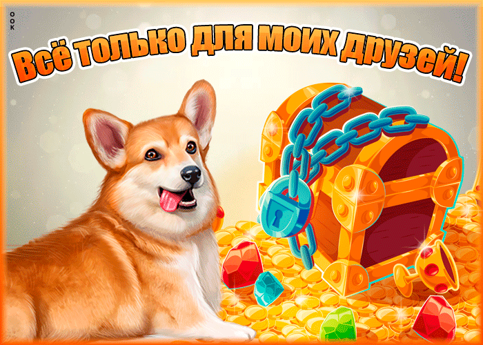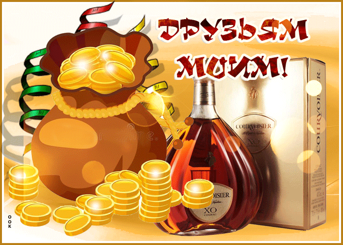 2. Gif открытка моим друзьям мешочек денег и коньяк!