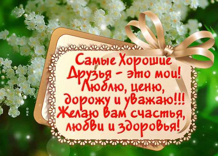 6. Красивая анимация : Самые хорошие друзья — это мои! Люблю, ценю, дорожу и уважаю! Желаю вам счастья, любви и здоровья!