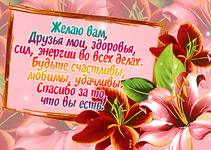4. Гиф картинка Друзья! Спасибо, что вы есть! Что вы со мною рядом! Вам чужды, знаю, зависть, лесть, слова, что больно ранят.