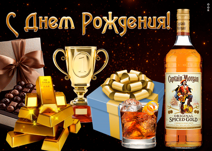 12. Отличная гифка с днём рождения мужчине со слитками золота и алкоголем