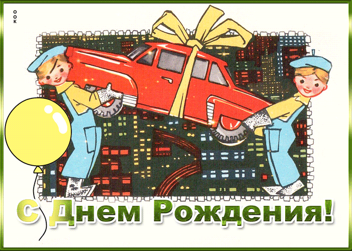 17. Советская мерцающая гиф открытка с днем рождения мужчине
