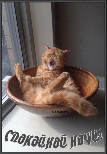 5. Смешная гифка спокойной ночи с зевающим котом!