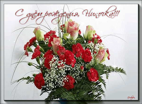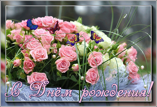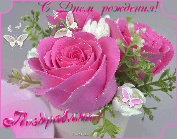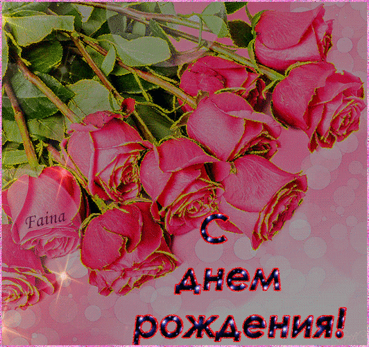 18. Крутая gif открытка с днем рождения для женщины с розовыми розами!